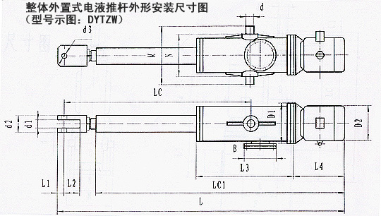 電液推桿是一種機、電、液一體化的新型柔性傳動機構、它以執行機構(油缸)、控機構(  液壓控制閥組)和動力源(油泵電機等)。根據現場安裝空間及用戶使用情況電液推桿可有多種  結構形式(具體見電液推桿外形安裝尺寸圖,也可根據用戶要求定制樣式)。電動機通過正反轉  驅動雙向液壓泵正反輸出壓力油,經液壓控制閥送至油缸,實現活塞桿的往復運動。